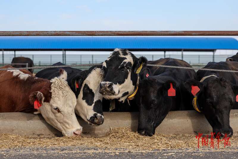 9月10日,新疆博尔塔拉蒙古自治州博乐市,新疆天莱农牧集团股份有限公司养殖场,牛群在进食。新疆天莱农牧集团股份有限公司成立于2013年,农牧园区10万亩,饲草料种植面积11万亩,现有肉牛存栏5万头,是西北规模较大的现代化肉牛养殖场。“快乐养牛,养快乐牛”是该公司的一项宗旨。